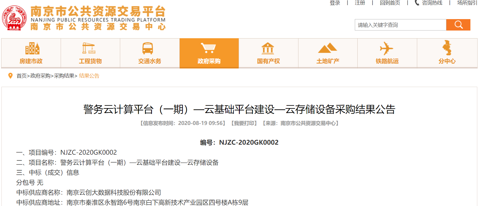 此前,南京市公共資源交易中心公布了警務云計算平臺(—期)—云基礎平臺建設一云存儲設備采購中標結(jié)果,云創(chuàng)大數(shù)據(jù)憑借cStor超融合云存儲系統(tǒng)軟件V5.0成功入選。本次集采將主要應用于南京市公安局警務云計算平臺項目中對存儲性能、可靠性、穩(wěn)定性等存在較高要求的關鍵業(yè)務。