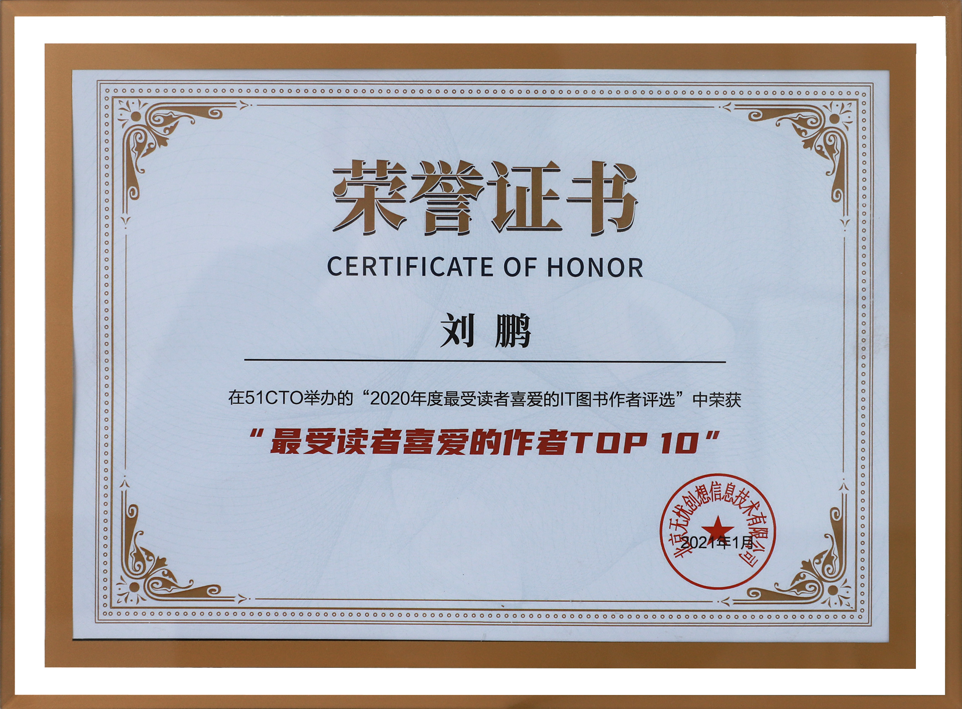 兩冊圖書主編劉鵬教授憑借獨(dú)到的教學(xué)方法和不俗的編著水平斬獲“最受讀者喜愛的作者TOP 10”。值得一提的是,近期劉鵬教授也憑借主編《人工智能——從小白到大神》榮獲中國水利水電出版社“最具影響力作者”殊榮,并獲出版社授牌。