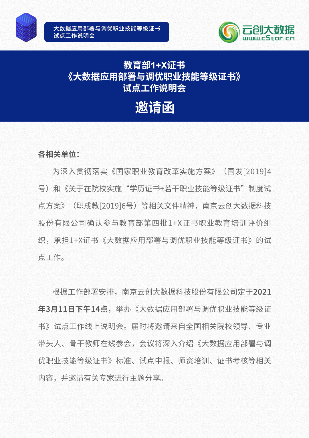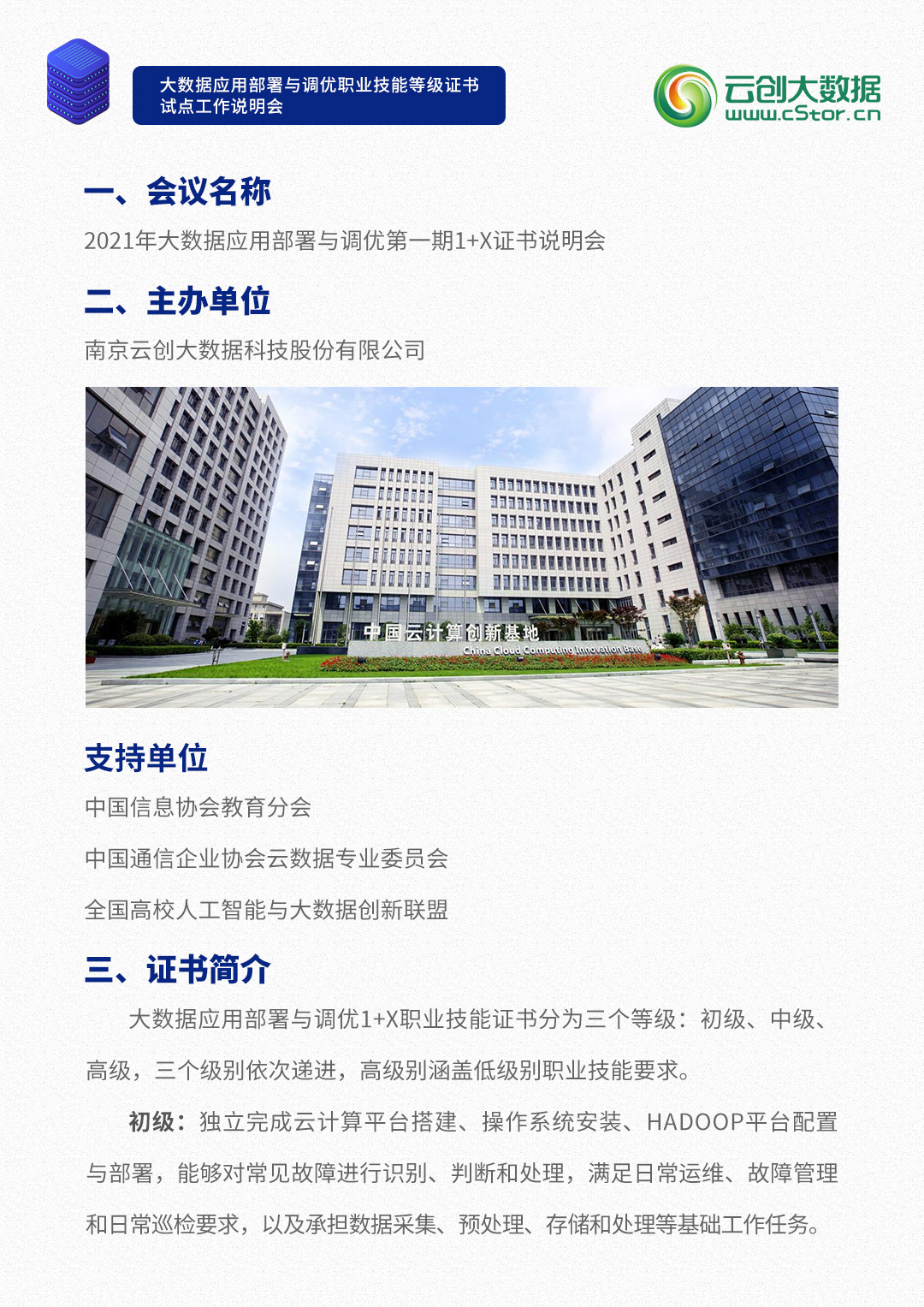 關于舉辦2021年大數(shù)據(jù)應用部署與調優(yōu)第一期1+X證書說明會的通知