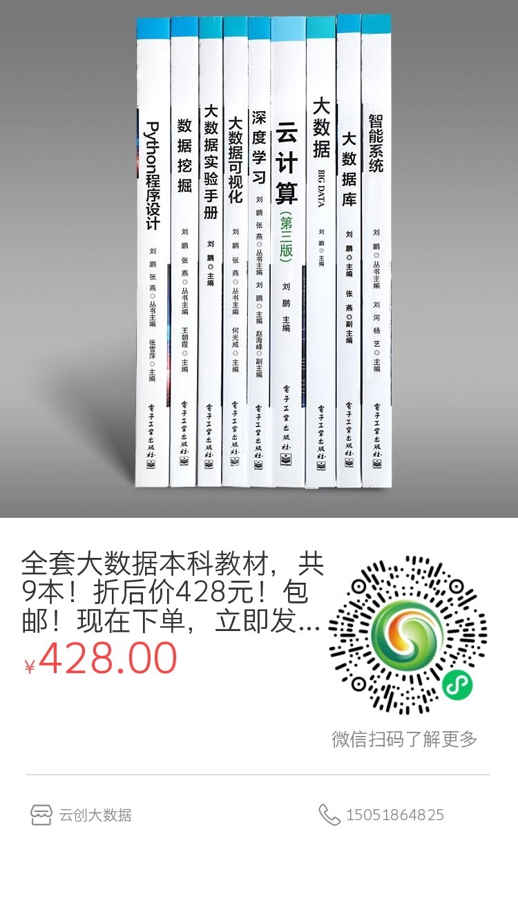 “高級大數(shù)據(jù)人才培養(yǎng)叢書”體系完整,實戰(zhàn)性強(qiáng),配套資源豐富,免費(fèi)提供教學(xué)課件、學(xué)習(xí)及實驗資料及其他資源,可讓讀者輕松完成“教”或“學(xué)”。該叢書收獲大批讀者的好評,諸多高校紛紛將其作為大數(shù)據(jù)專業(yè)教材使用。