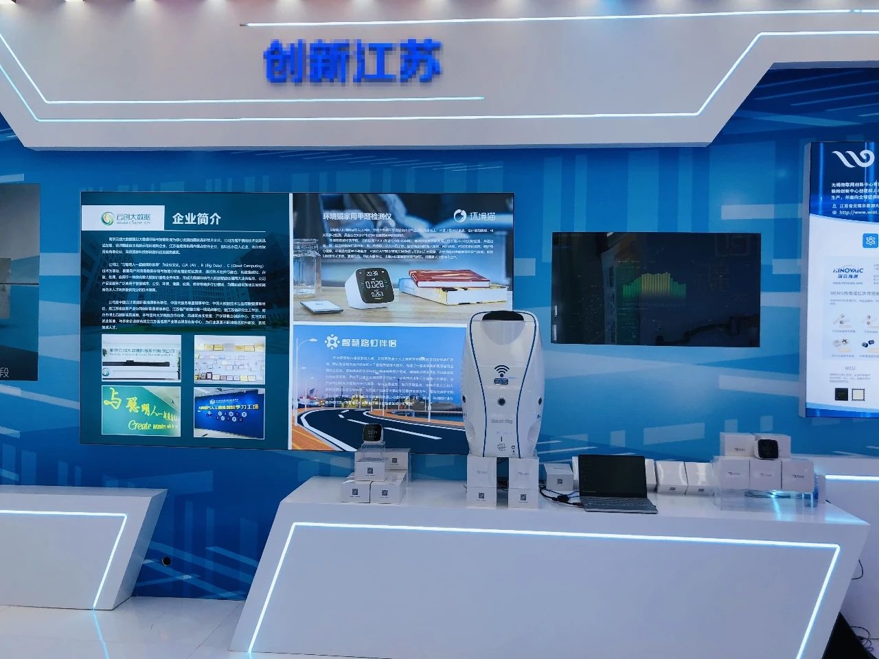 博覽會設置中央展區(qū)和地方展區(qū)。其中,江蘇品牌展館的展示主題為“江海流蘇”,展區(qū)緊緊圍繞“爭當表率、爭做示范、走在前列”的重大使命和“強富美高”新江蘇現(xiàn)代化建設的時代要求,打造“創(chuàng)新江蘇、制造江蘇、消費江蘇、美麗江蘇”四大板塊,呈現(xiàn)江蘇品牌盛宴。云創(chuàng)大數(shù)據(jù)作為“創(chuàng)新江蘇”板塊的代表企業(yè),攜智慧路燈伴侶和環(huán)境貓家用甲醛檢測儀盛裝亮相,吸引了眾多訪客和客商的現(xiàn)場了解與咨詢。