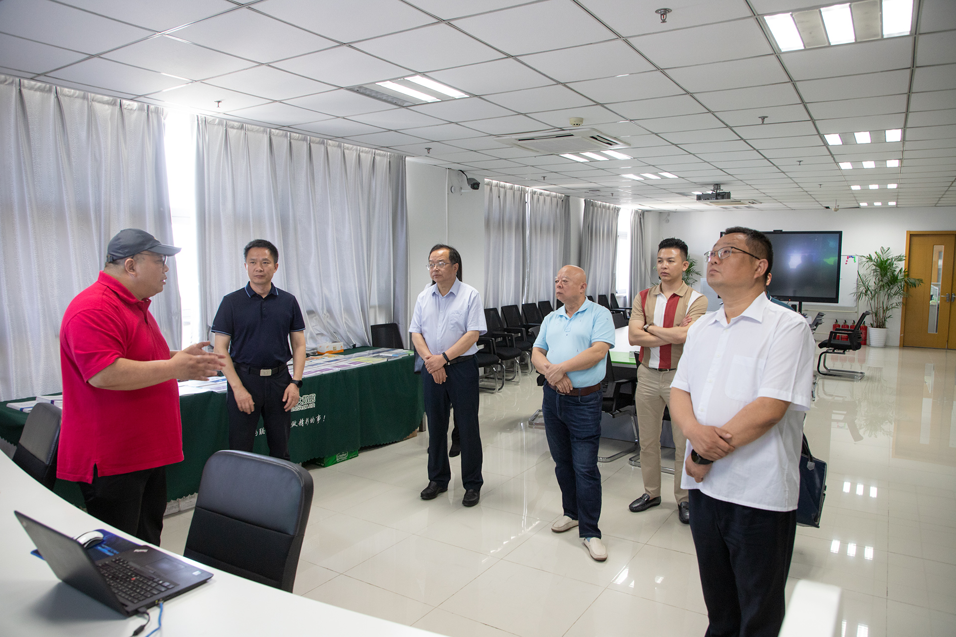 6月4日,滁州市機(jī)關(guān)事務(wù)管理處主任、黨組書記周成東,滁州高教科創(chuàng)城副主任張峰,滁州市機(jī)關(guān)事務(wù)管理處二級調(diào)研員李駿、辦公室主任馬健、公務(wù)保障二科科長歐寧,滁州高教科創(chuàng)城建設(shè)投資發(fā)展集團(tuán)有限公司促進(jìn)部經(jīng)理蔣琳,東莞市興帝實(shí)業(yè)有限公司總裁張鑒秋,以及中海創(chuàng)(南京)科技發(fā)展有限公司總經(jīng)理毛星原一行到訪云創(chuàng)參觀考察,云創(chuàng)大數(shù)據(jù)總裁劉鵬教授、外聯(lián)負(fù)責(zé)人沈大為熱情接待了來賓。