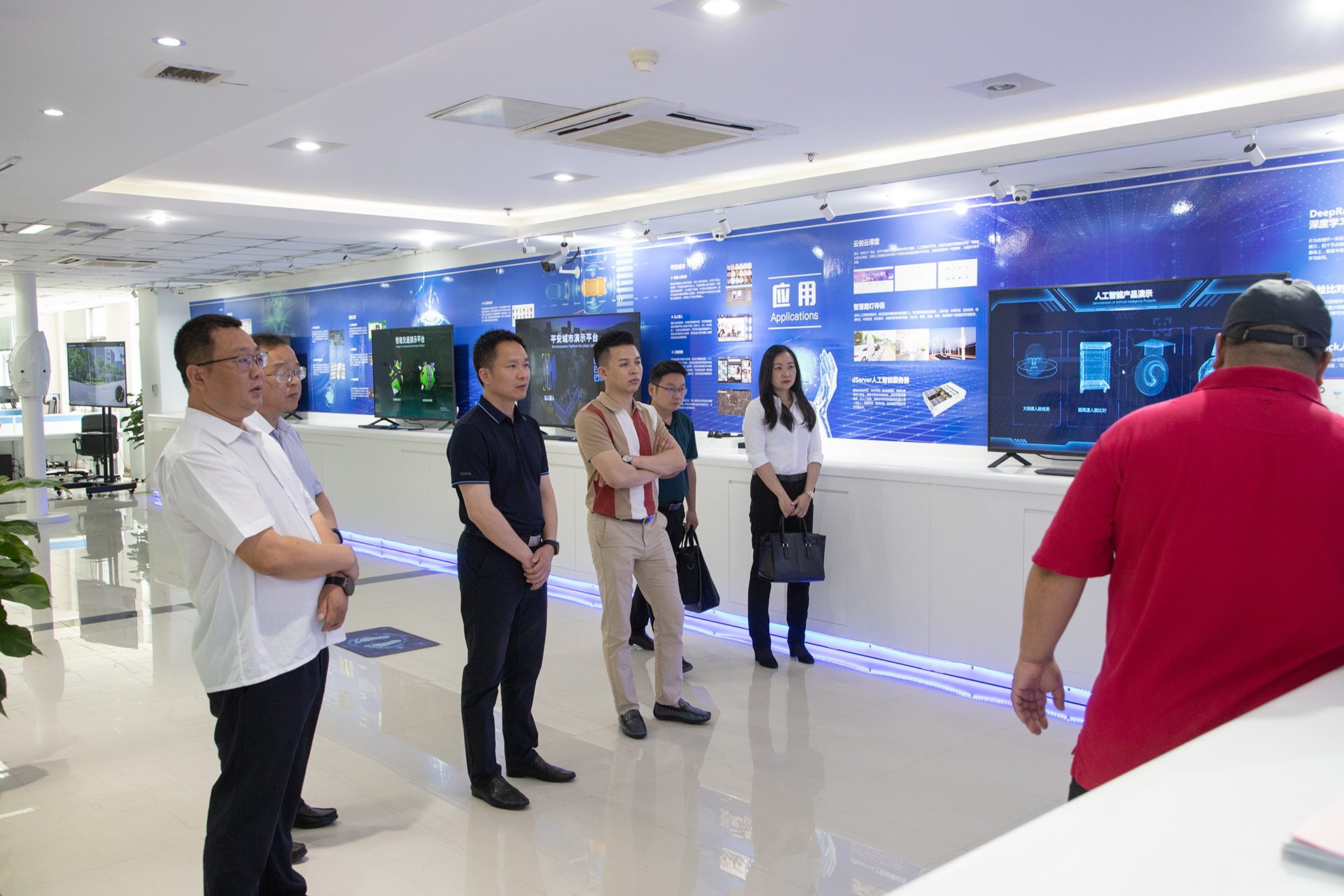 首先,沈大為帶來賓對九樓榮譽(yù)資質(zhì)和技術(shù)專利展區(qū)、劉鵬教授主編圖書展區(qū)、大數(shù)據(jù)運(yùn)營中心,以及十樓人工智能研究院等多處進(jìn)行參觀。所到之處展示的產(chǎn)品應(yīng)用和榮譽(yù)資質(zhì)給來賓留下了深刻印象,來賓時(shí)不時(shí)針對感興趣的話題與沈大為進(jìn)行交流。