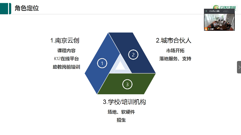 接著,張偉總監(jiān)圍繞云創(chuàng)青少年人工智能編程課程特色、等級(jí)測評(píng)、助教培訓(xùn)、成功案例等內(nèi)容進(jìn)行了分享。張偉總監(jiān)介紹到,云創(chuàng)開發(fā)提供的青少年人工智能編程教學(xué)平臺(tái)、考試考證平臺(tái)、課后延時(shí)管理服務(wù)三大平臺(tái)可以大大助力合作伙伴開拓市場。