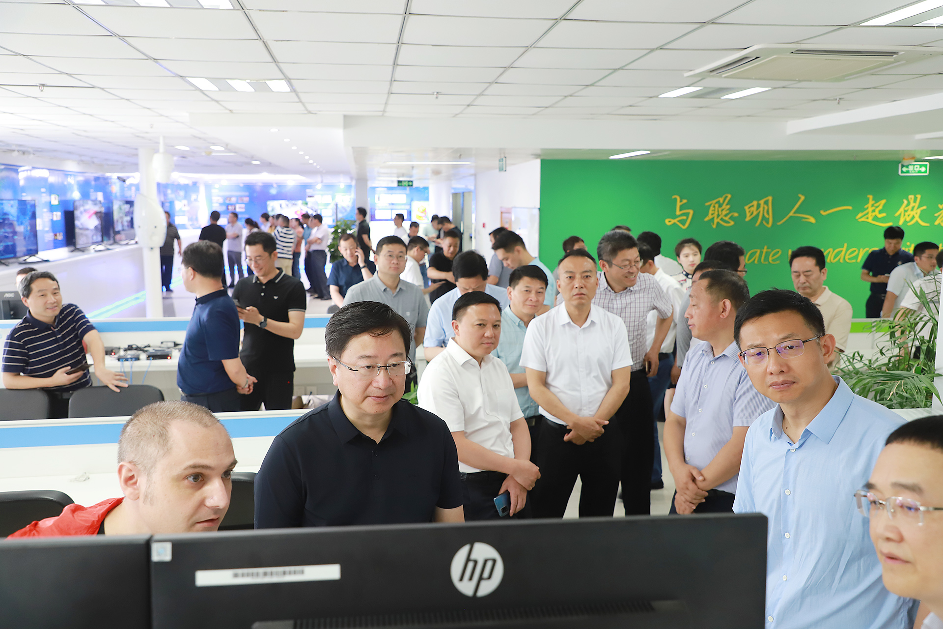6月29日上午,蕪湖市鳩江區(qū)黨政代表團(tuán)在南京市秦淮區(qū)進(jìn)行參觀考察交流。10時(shí)5分許,包括區(qū)委方忠書(shū)記在內(nèi)的鳩江區(qū)黨政代表團(tuán),以及秦淮區(qū)委辦、科技局主要負(fù)責(zé)同志,白下高新區(qū)管委會(huì)相關(guān)處室主要負(fù)責(zé)同志共計(jì)70余位領(lǐng)導(dǎo)干部來(lái)到南京云創(chuàng)大數(shù)據(jù)科技股份有限公司,總裁劉鵬教授和外聯(lián)負(fù)責(zé)人沈大為分別帶大家進(jìn)行參觀。