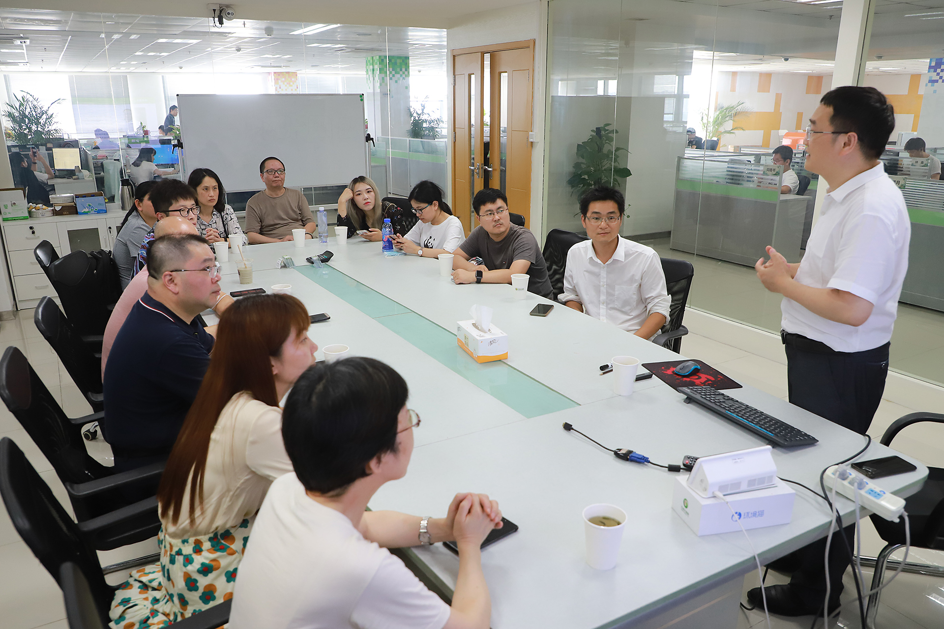 在實(shí)地參觀環(huán)節(jié),劉鵬教授帶來賓逐一對九樓榮譽(yù)資質(zhì)和技術(shù)專利展區(qū)、劉鵬教授主編圖書展區(qū)、大數(shù)據(jù)運(yùn)營中心,以及十樓人工智能研究院等多處進(jìn)行參觀。琳瑯滿目的榮譽(yù)獎(jiǎng)項(xiàng)和頗具創(chuàng)新的產(chǎn)品應(yīng)用收獲了來賓的一致贊賞。