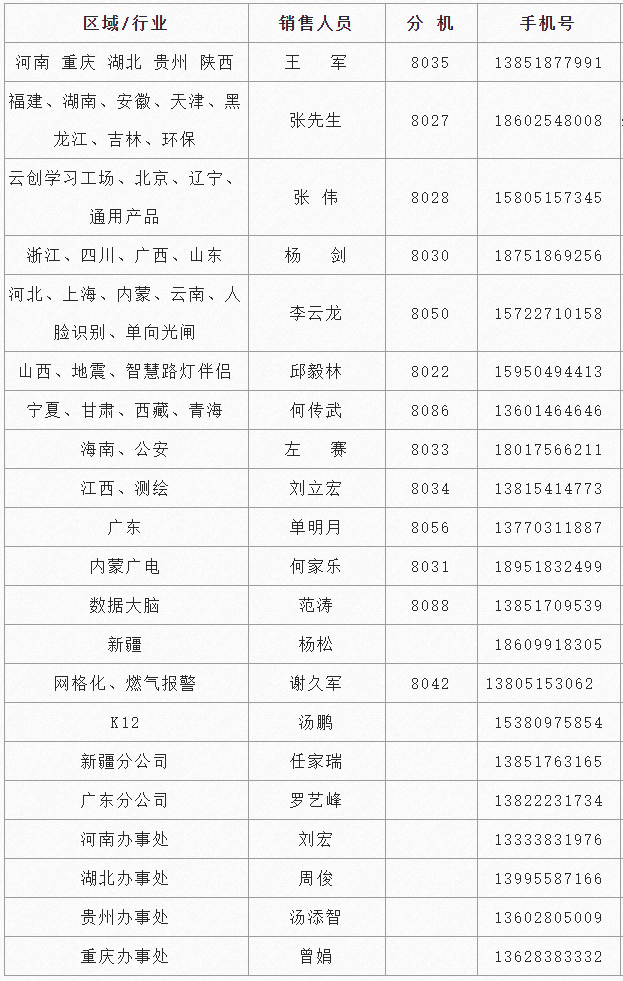 如有合作意向,請在下表中查找到您所在區(qū)域的銷售人員進行咨詢!?