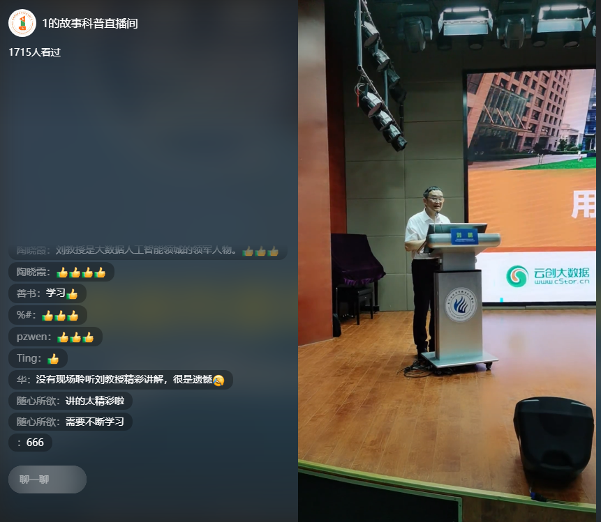 本次云課堂采用線上線下相結合的方式,來自南京金陵高等職業(yè)技術學院的部分同學們在現場與大批網友共計約5000人共同觀看了直播,還有的班級組織了全班觀看。劉鵬教授語言通俗易懂、幽默風趣,在向大家介紹了相關技術概念之外,還詳盡地講解了大數據、人工智能等大量實例。劉鵬教授也介紹了云創(chuàng)大數據的企業(yè)概況,及其在大數據人工智能等方面的產品應用和成功案例。大家對此表示收獲頗豐,紛紛與劉鵬教授進行交流,并用熱烈的掌聲對劉鵬教授的分享表達了感謝。