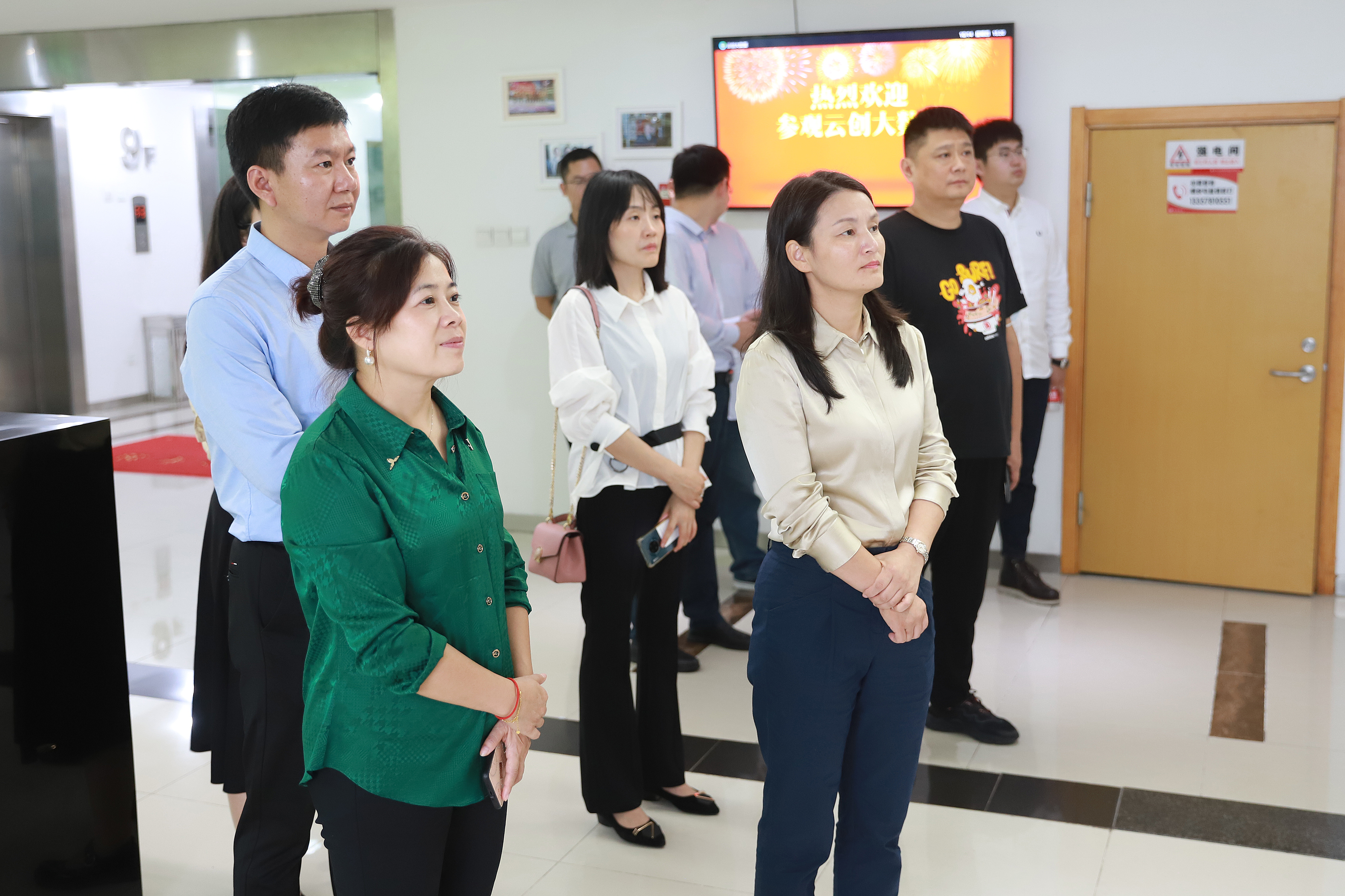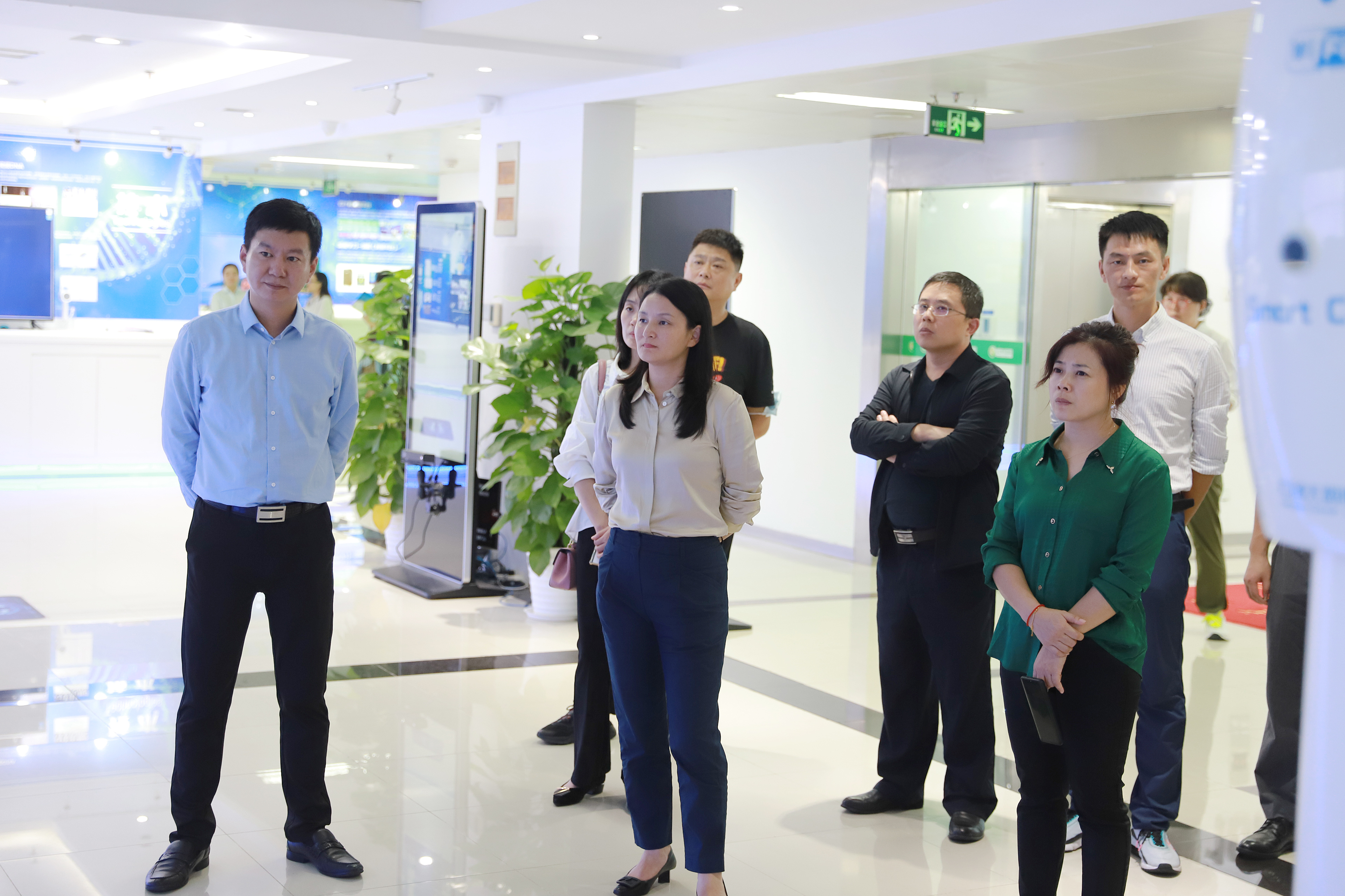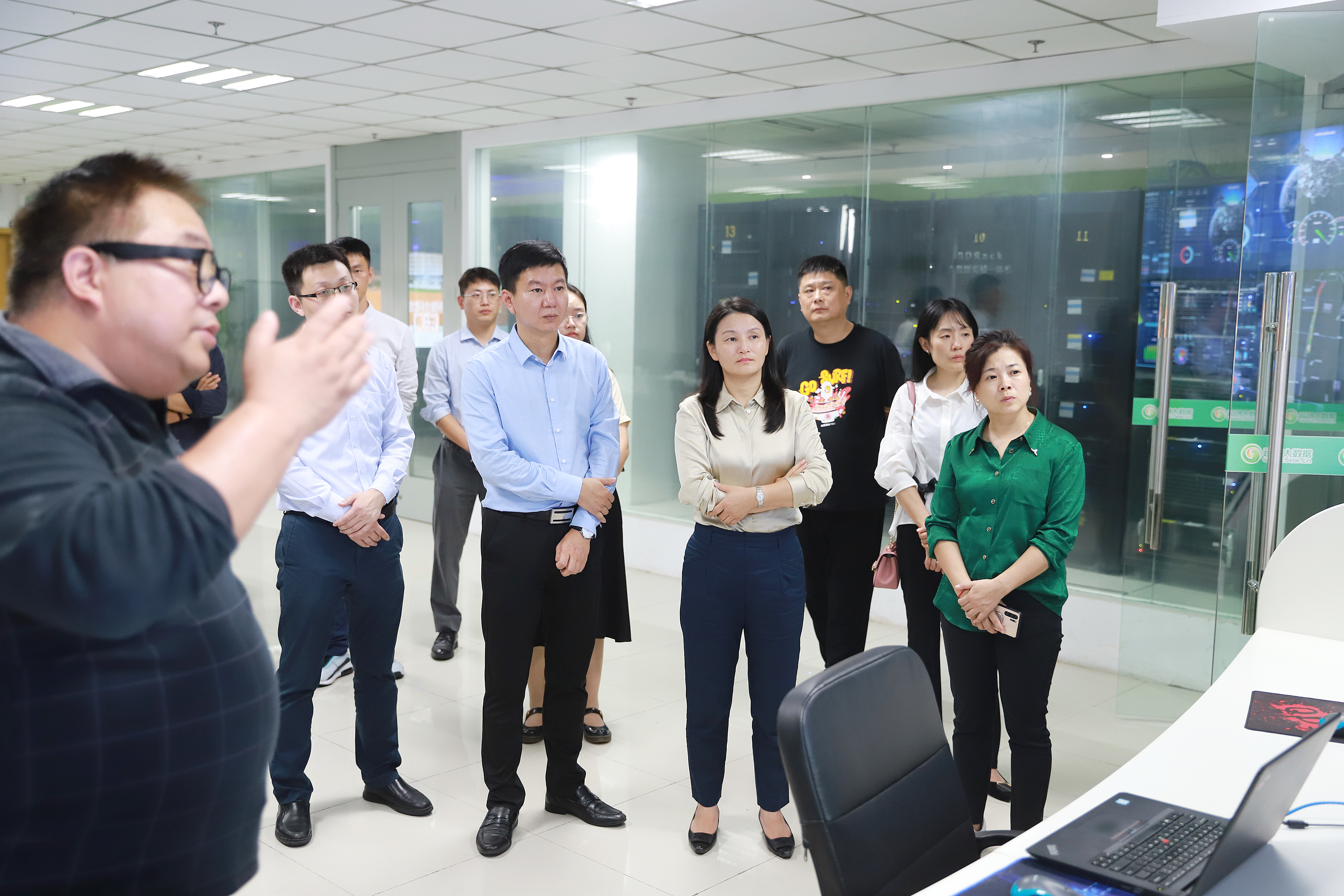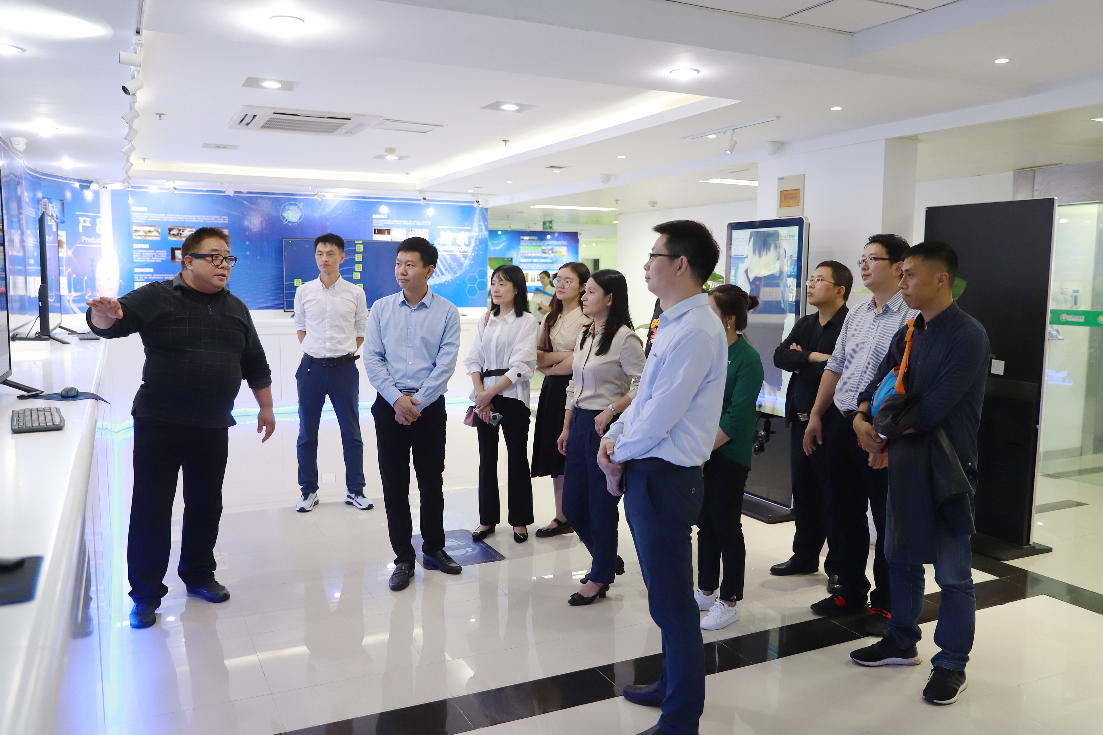 沈大為一邊帶大家參觀,一邊向其介紹云創(chuàng)的企業(yè)文化、代表產(chǎn)品、核心技術、榮譽資質(zhì)等。具體而言,大家對九樓榮譽資質(zhì)和技術專利展區(qū)、劉鵬教授主編圖書展區(qū)、大數(shù)據(jù)運營中心,以及十樓人工智能研究院等多處進行了參觀。值得一提的是,云創(chuàng)在物聯(lián)網(wǎng)、云計算、大數(shù)據(jù)以及人工智能領域的技術探索和成功案例收獲大家不俗評價。