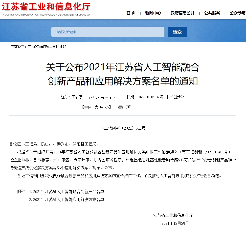 根據(jù)《關(guān)于組織開展2021年江蘇省人工智能融合創(chuàng)新產(chǎn)品和應(yīng)用解決方案申報(bào)工作的通知》(蘇工信創(chuàng)新〔2021〕403號(hào)),經(jīng)企業(yè)申報(bào)、各市推薦、形式審查、專家評(píng)審、廳內(nèi)會(huì)審等程序,近日,江蘇省工業(yè)和信息化廳組織評(píng)選出2021年江蘇省人工智能融合創(chuàng)新產(chǎn)品和應(yīng)用解決方案名單。其中,南京云創(chuàng)大數(shù)據(jù)科技股份有限公司(簡(jiǎn)稱“云創(chuàng)大數(shù)據(jù)”)人工智能產(chǎn)品——“面向智慧城市的視頻智能監(jiān)控系統(tǒng)”榜上有名,成功膺選“江蘇省人工智能應(yīng)用解決方案名單”。