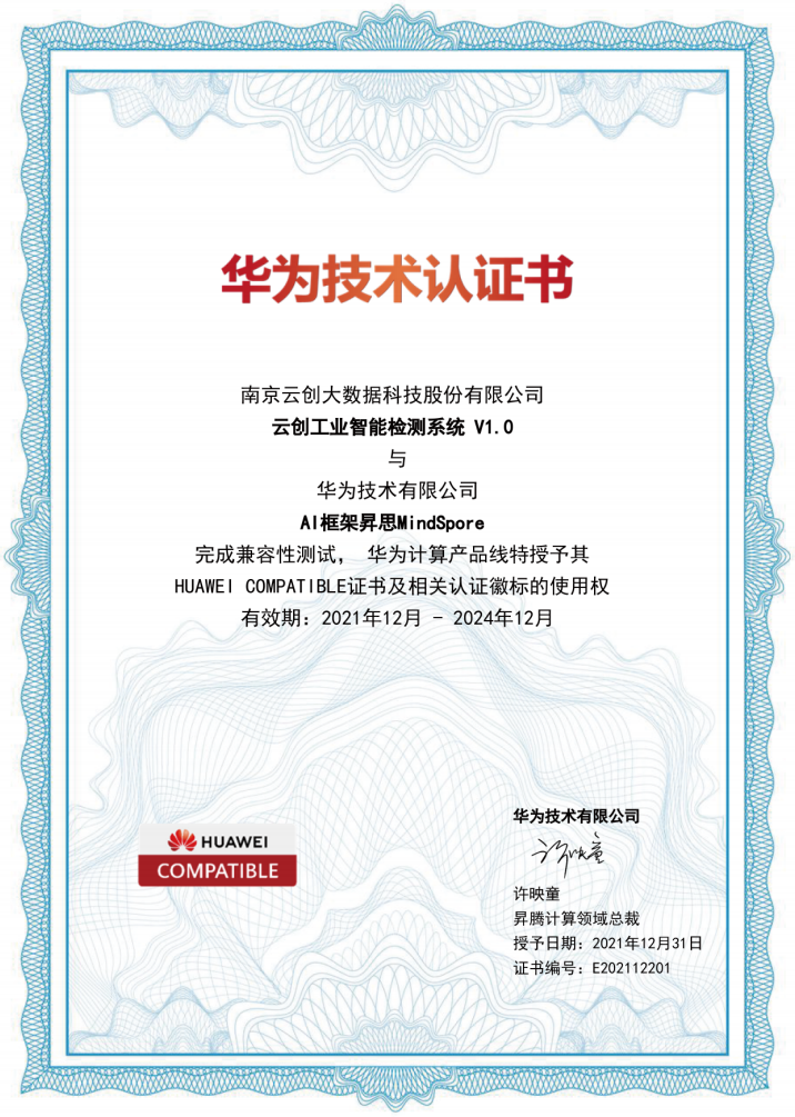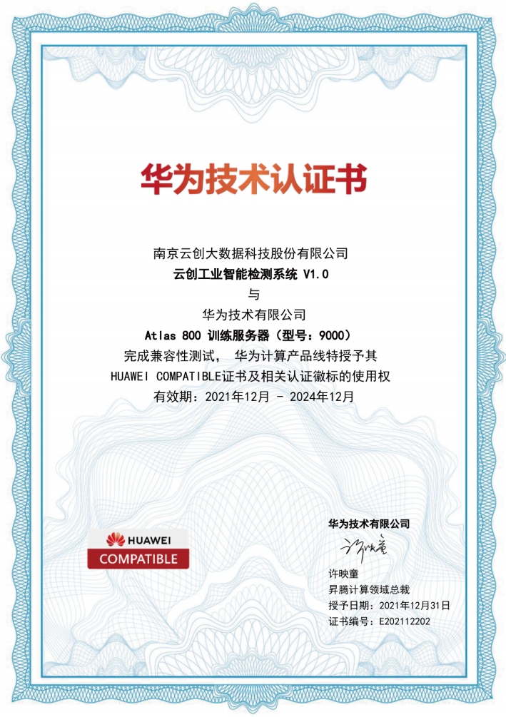 自云創(chuàng)大數(shù)據(jù)成為江蘇鯤鵬計(jì)算產(chǎn)業(yè)聯(lián)盟首批成員以來(lái),云創(chuàng)與華為在多領(lǐng)域均取得了亮眼的合作成果,且喜訊頻傳。無(wú)獨(dú)有偶,云創(chuàng) cStor 超融合云存儲(chǔ)系統(tǒng)軟件 V5.0 與華為 TaiShan 200系列,入侵檢測(cè)系統(tǒng) V1.0 與華為 Atlas 800 推理服務(wù)器 (型號(hào)3000)等同樣完成兼容性測(cè)試,也被授予了“華為技術(shù)認(rèn)證證書(shū)”。