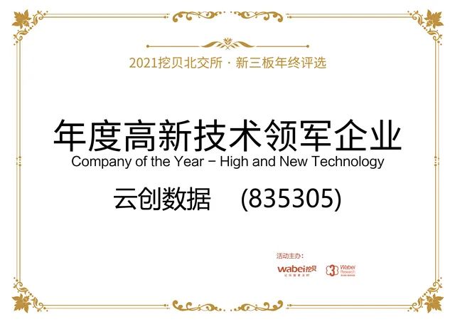 云創(chuàng)數(shù)據(jù)榮膺挖貝“2021年度高新技術(shù)領(lǐng)軍企業(yè)”