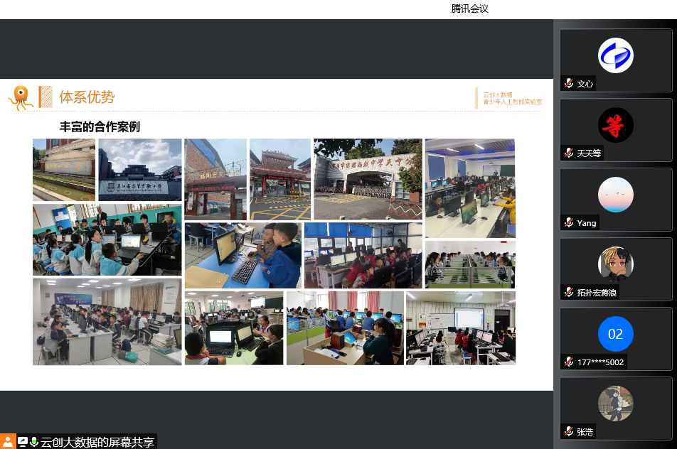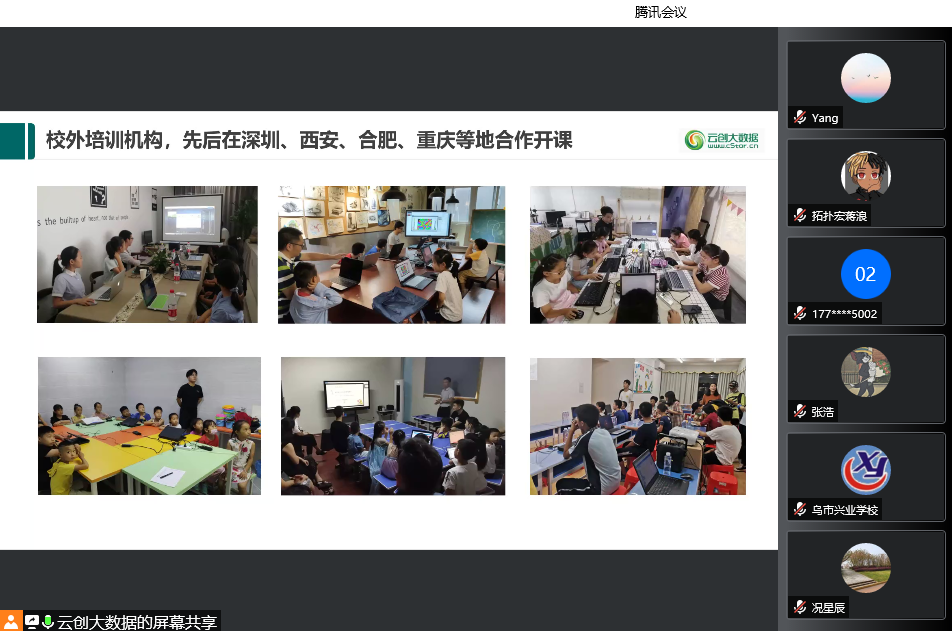 4月22日下午,云創(chuàng)大數(shù)據(jù)在騰訊會議線上舉辦了“疫情期間青少年編程教育在線研討會”,來自全國不同城市的教育培訓企業(yè)代表參加了本次大會。會上,云創(chuàng)大數(shù)據(jù)對“青少年人工智能編程”課程體系、成功案例、特色服務(wù)、合作模式等進行了介紹,并解答了大家的相關(guān)疑問。