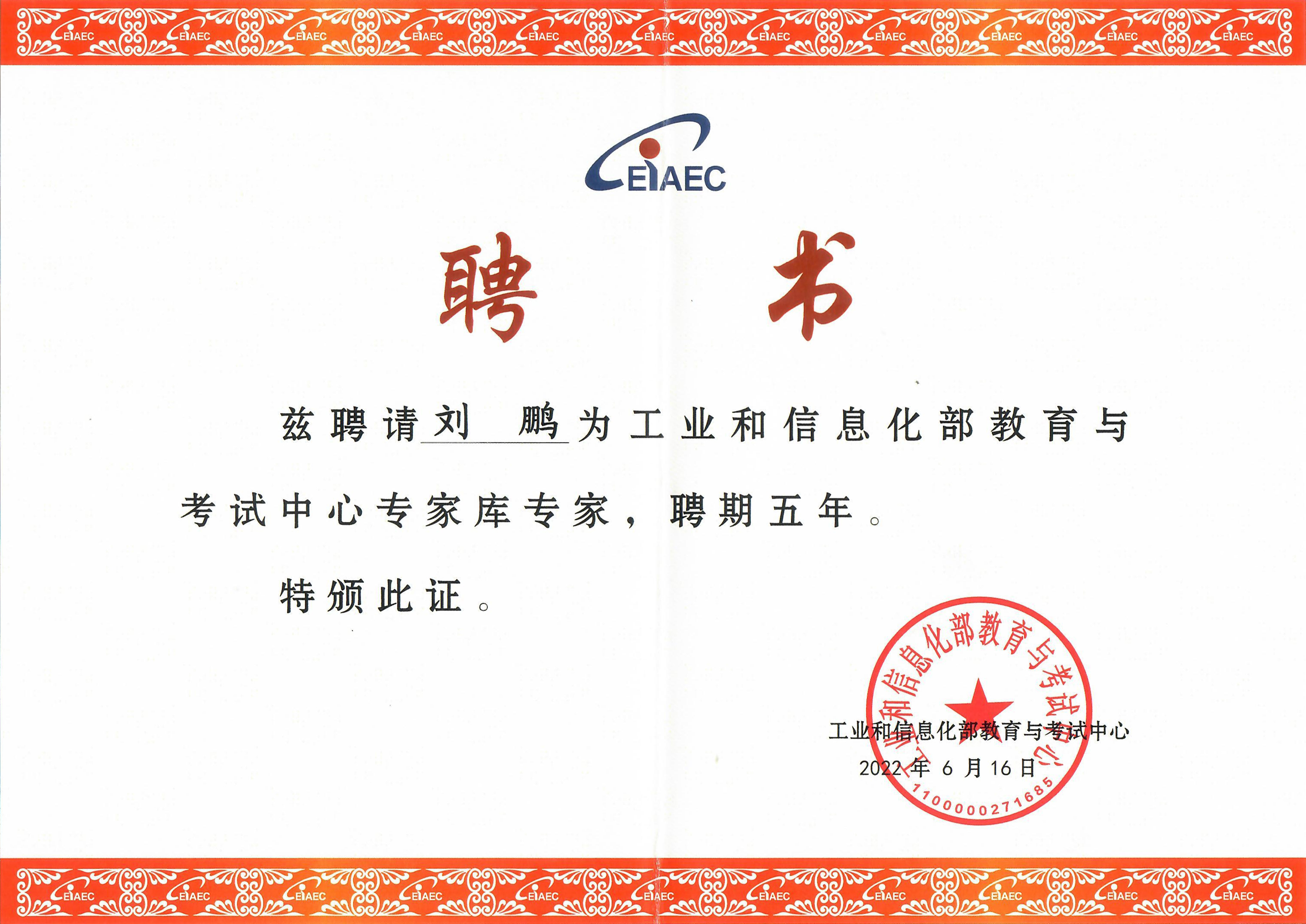 受聘為工信部教育與考試中心專家?guī)鞂<液?,劉鵬教授將與專家?guī)炱渌麑<乙坏罃y手努力,全力推進(jìn)工信部教育與考試中心相關(guān)工作,為行業(yè)發(fā)展不斷助力。