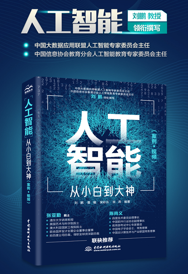 為了更好地促進(jìn)我國(guó)高校人工智能、大數(shù)據(jù)、區(qū)塊鏈等新興學(xué)科的教材編寫工作、繁榮教材市場(chǎng),發(fā)揮教材示范效應(yīng),近期,全國(guó)高校人工智能與大數(shù)據(jù)創(chuàng)新聯(lián)盟結(jié)合市場(chǎng)上已經(jīng)出版的教材,從教材品牌知名度、教材內(nèi)容質(zhì)量、教材成熟度、教材銷售量、作者知名度、出版機(jī)構(gòu)知名度、消費(fèi)者滿意度等七個(gè)維度綜合進(jìn)行打分,評(píng)選出“2022最受歡迎的10本人工智能優(yōu)秀教材”,以此促進(jìn)、帶動(dòng)教材開發(fā)出版工作。其中,由劉鵬教授主編、中國(guó)水利水電出版社出版的《人工智能——從小白到大神》榜上有名。
