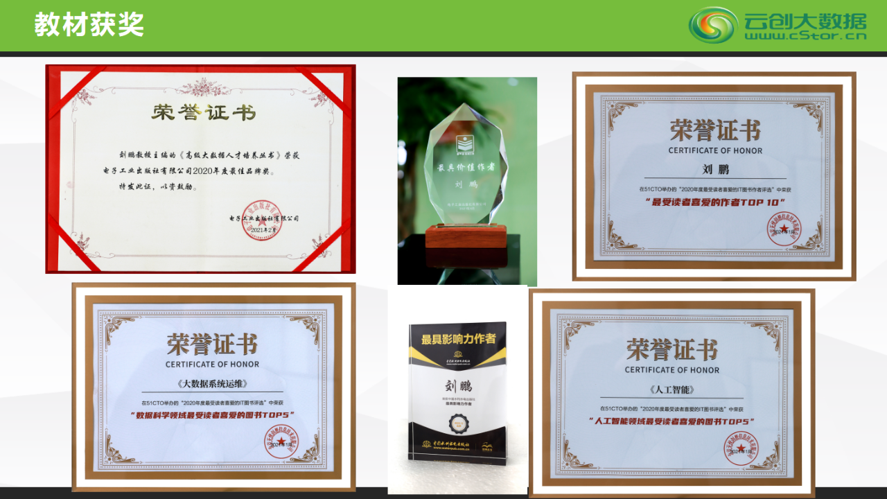 劉鵬教授主編30多本大數(shù)據(jù)、人工智能系列教材,這些教材在清華大學(xué)出版社、電子工業(yè)出版社、高等教育出版社等出版社出版,并被清華大學(xué)等全國大批高校普遍采用,收獲廣泛好評。其中,《云計(jì)算》曾位居中國高被引圖書自動化技術(shù)、計(jì)算機(jī)技術(shù)類別第一名。