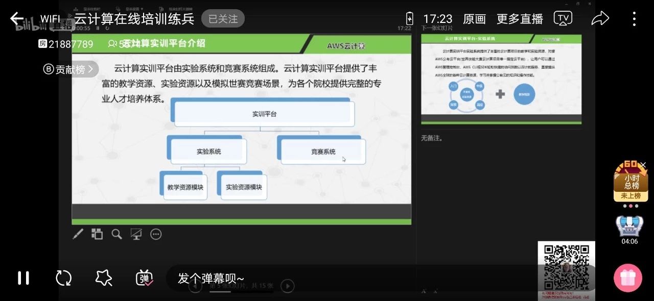 在直播過程中,從世界技能大賽及其采用的公有云平臺(tái)介紹,直至內(nèi)置大量實(shí)驗(yàn)和教學(xué)內(nèi)容以及豐富競賽資源的云創(chuàng)云計(jì)算實(shí)訓(xùn)平臺(tái),主播講師都予以細(xì)致講解,同時(shí)穿插云計(jì)算專業(yè)知識(shí),互動(dòng)區(qū)直呼講解好、長知識(shí),大有獲益。