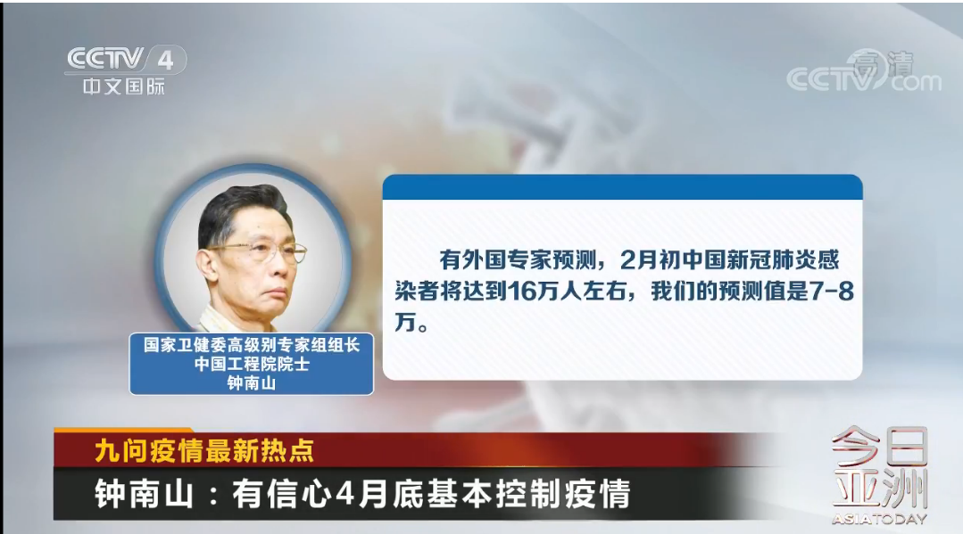 2月下旬,鐘南山院士接受央視4套《今日亞洲》欄目采訪透露,“根據(jù)我們團隊在傳統(tǒng)模型基礎(chǔ)上加上兩個影響因素,國家強力干預(yù)和春節(jié)后回程高峰消除后,預(yù)測高峰應(yīng)該在2月中接近2月底。到了2月15日,數(shù)字果然下來了。我們有信心,四月底基本控制?!?/span>